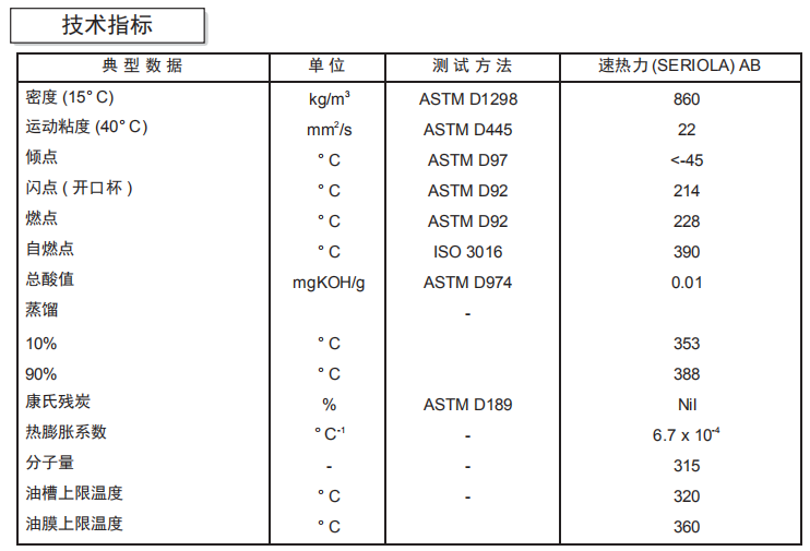 ● 優良的抗熱裂化及抗氧化性能 , 使用壽命長